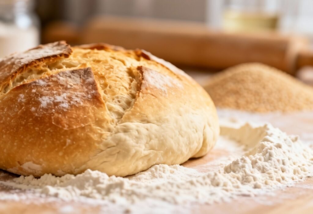 - Shape the Loaf: Gently punch down the dough (it’s okay if it doesn’t deflate much). On a lightly floured surface, shape the dough into a round or oval loaf.