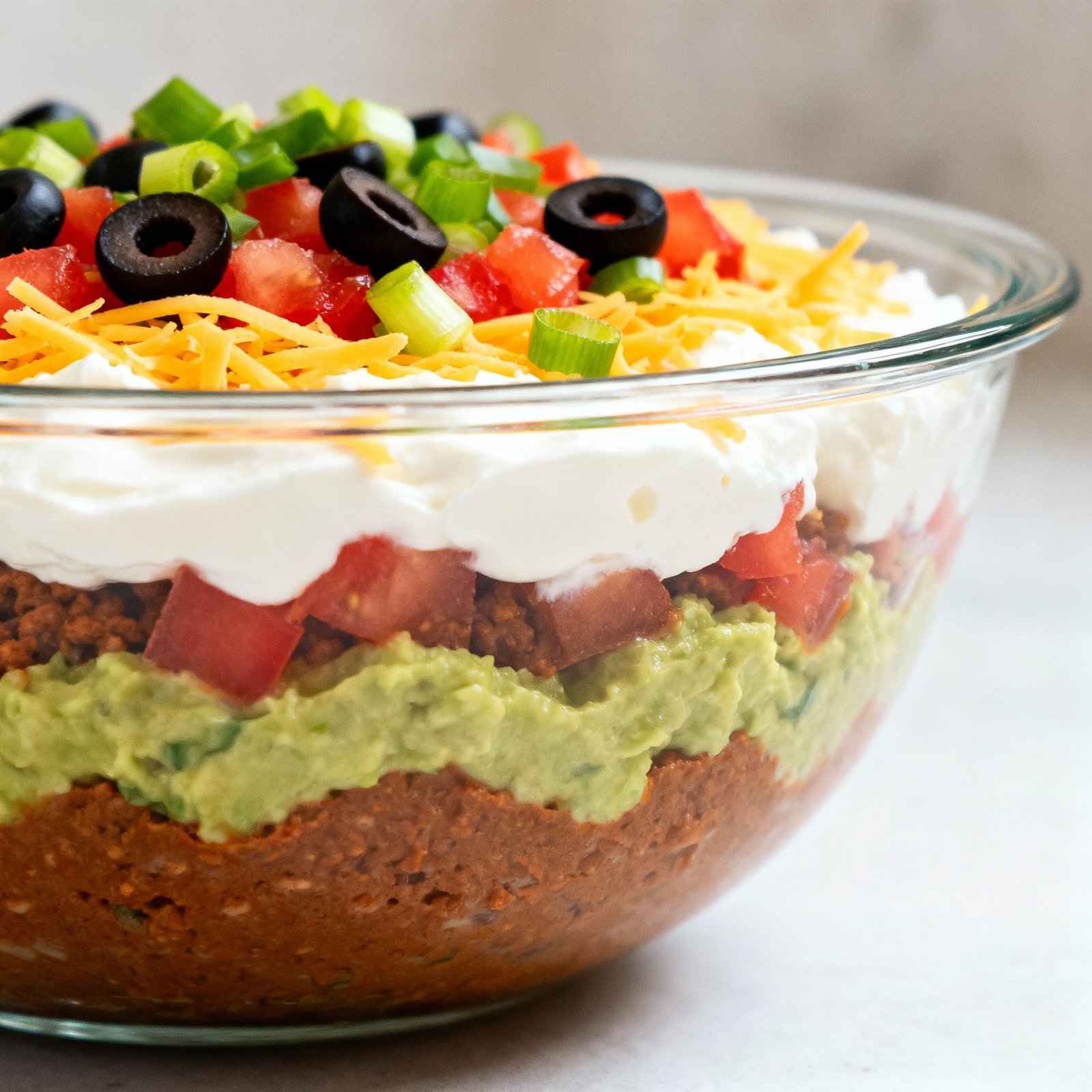• Prevent Guacamole Browning: To prevent the guacamole from browning, press plastic wrap directly onto the surface of the guacamole layer before covering the entire dish.