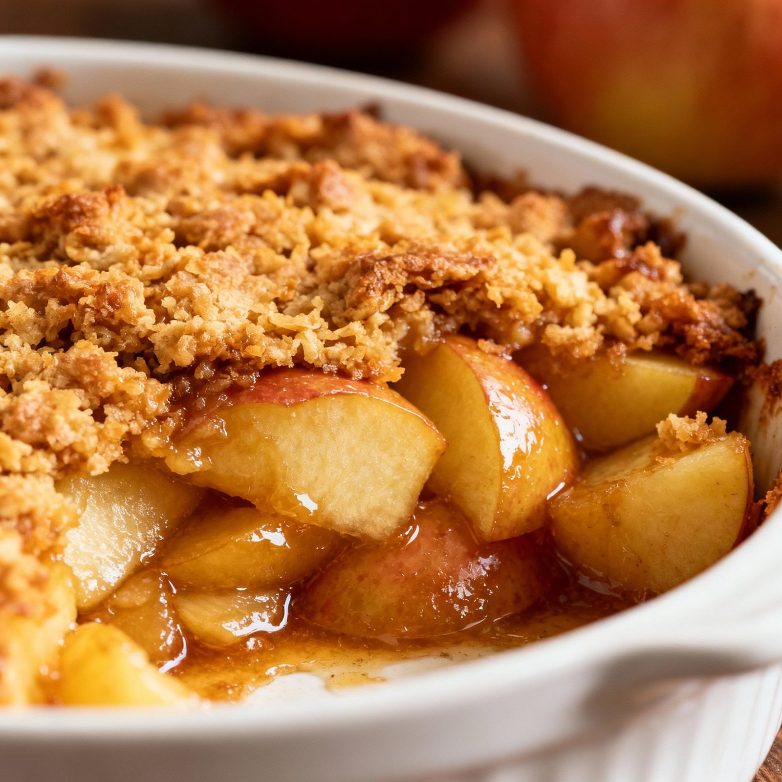 6. Bake: Bake for 35-45 minutes, or until the topping is golden brown and the apples are tender. The filling should be bubbling around the edges. If the topping starts to brown too quickly, tent the dish with foil for the last 10-15 minutes of baking.