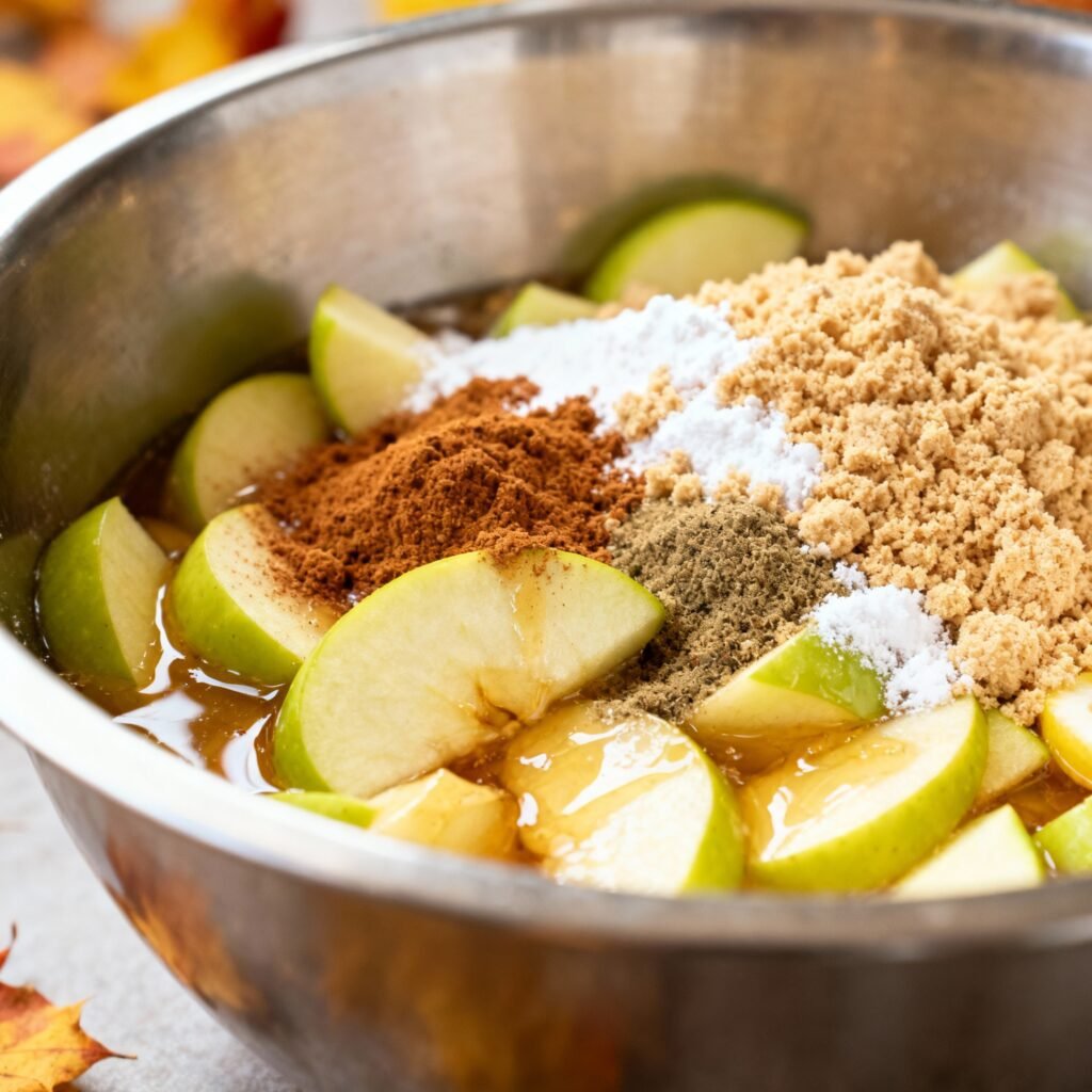 - Combine Ingredients: In a large bowl, combine the yellow cake mix, apple pie filling, eggs, and vegetable oil.