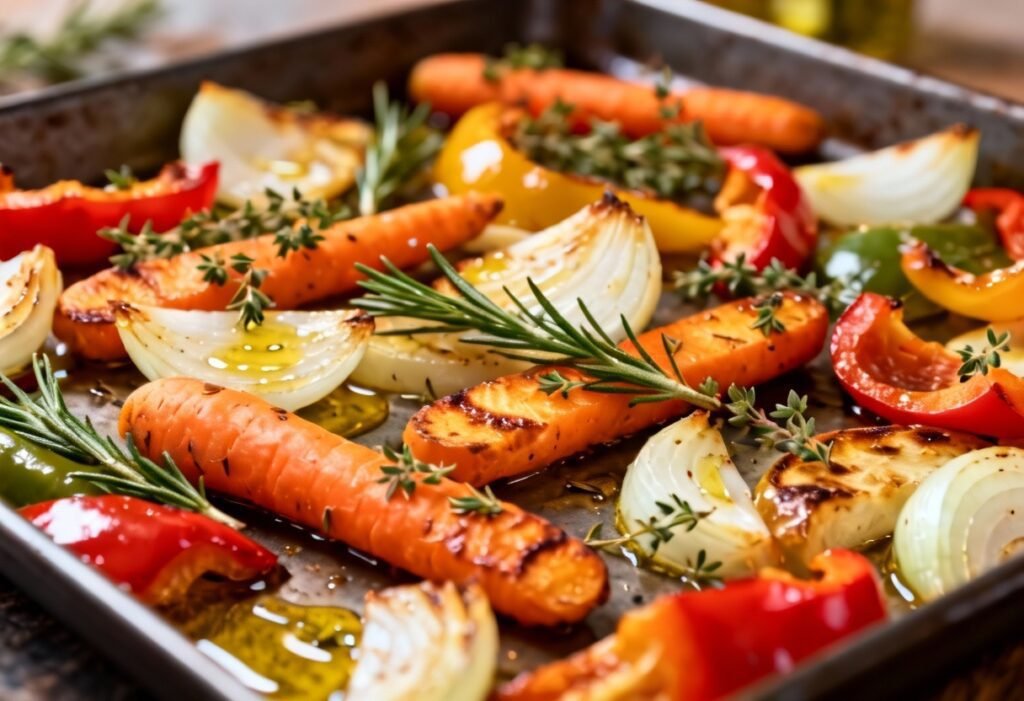 - Garnish and Serve: Remove the vegetables from the oven and garnish with fresh herbs, if desired. Serve immediately.