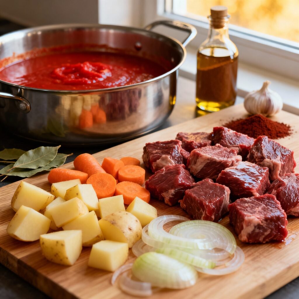 - Prepare the Beef: In a large bowl, season the beef cubes with salt and pepper.