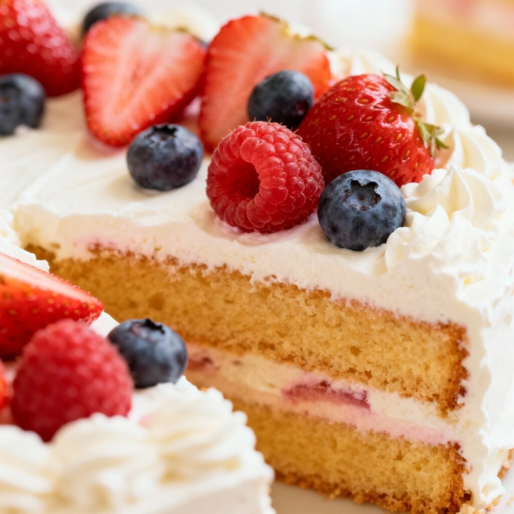 - Decorate: Decorate the top of the cake with the remaining berries.