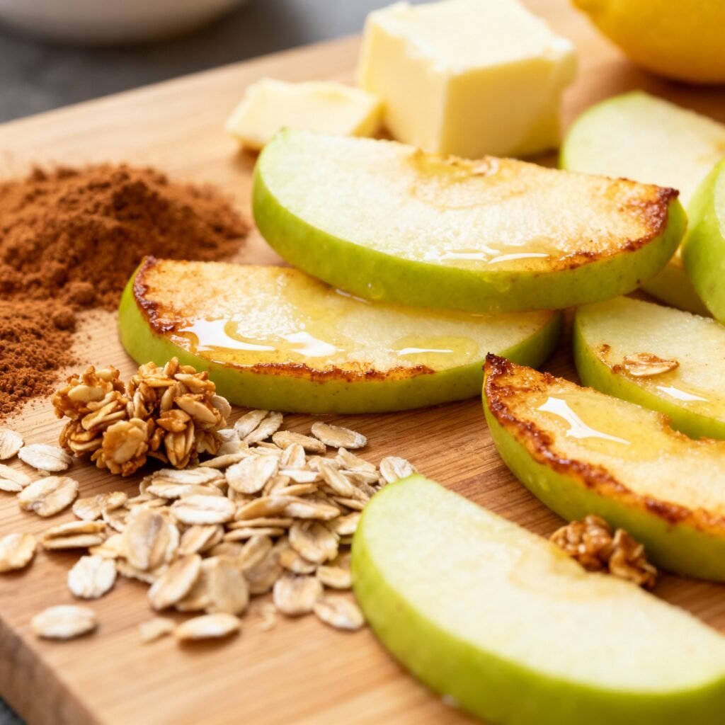 - Top the Apples: Sprinkle the crumble topping evenly over the apple filling.