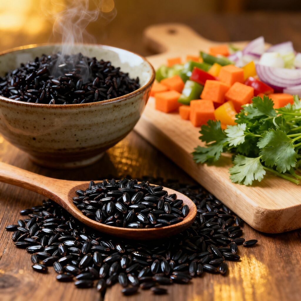 • Nutrient-Rich: Black rice is naturally packed with antioxidants, fiber, and minerals, making it a healthier alternative to white rice.