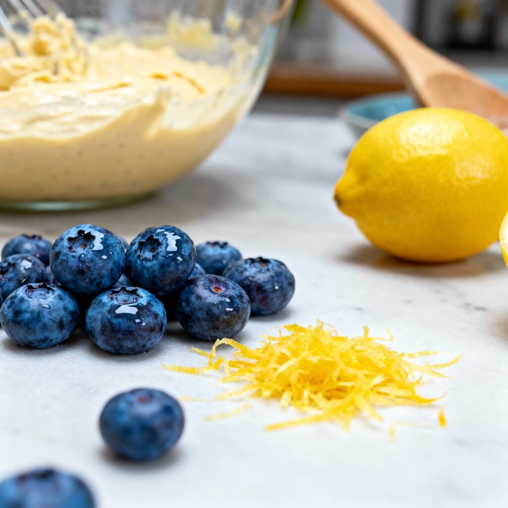 - Fold in Lemon Zest and Blueberries: Gently fold in the lemon zest and blueberries. Be careful not to crush the blueberries.