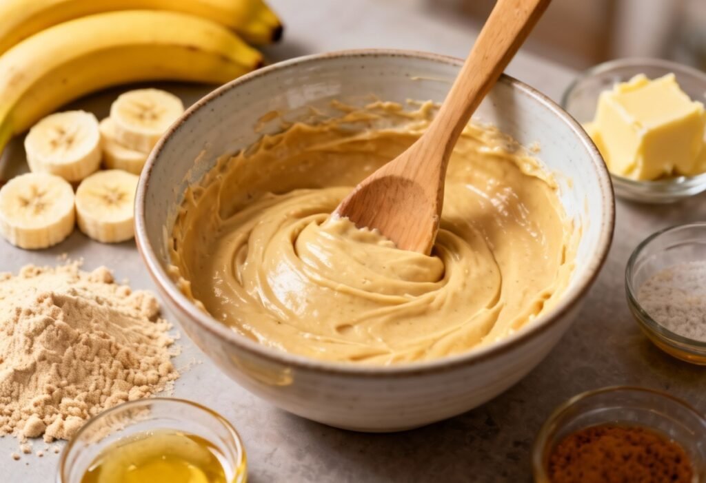 - Pour into Pan: Pour the batter into the prepared loaf pan, spreading it evenly.