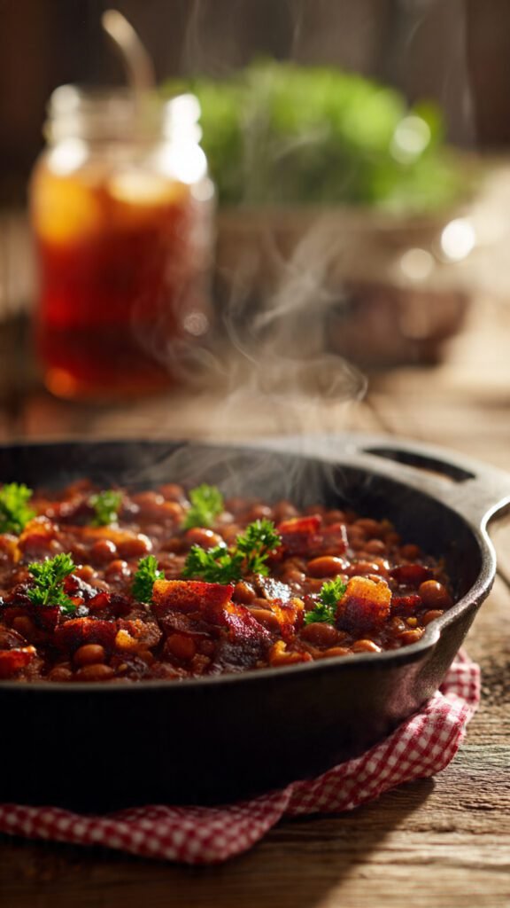 2. It’s a Texture Masterpiece The problem with plain canned beans is that the sauce is usually thin and watery. By adding our own thickeners (hello, BBQ sauce and molasses) and baking it, we evaporate that excess moisture. The sugars caramelize on top, creating that sticky, tacky, chewy crust that everyone fights over at the potluck.