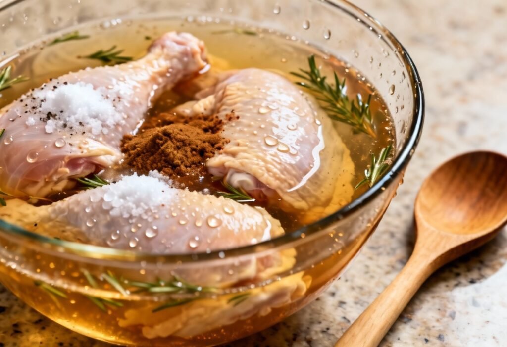 • My chicken is already seasoned. Should I still brine it? If your chicken is already heavily seasoned, brining might make it too salty. Consider reducing the amount of salt in the brine or skipping the brining process altogether.