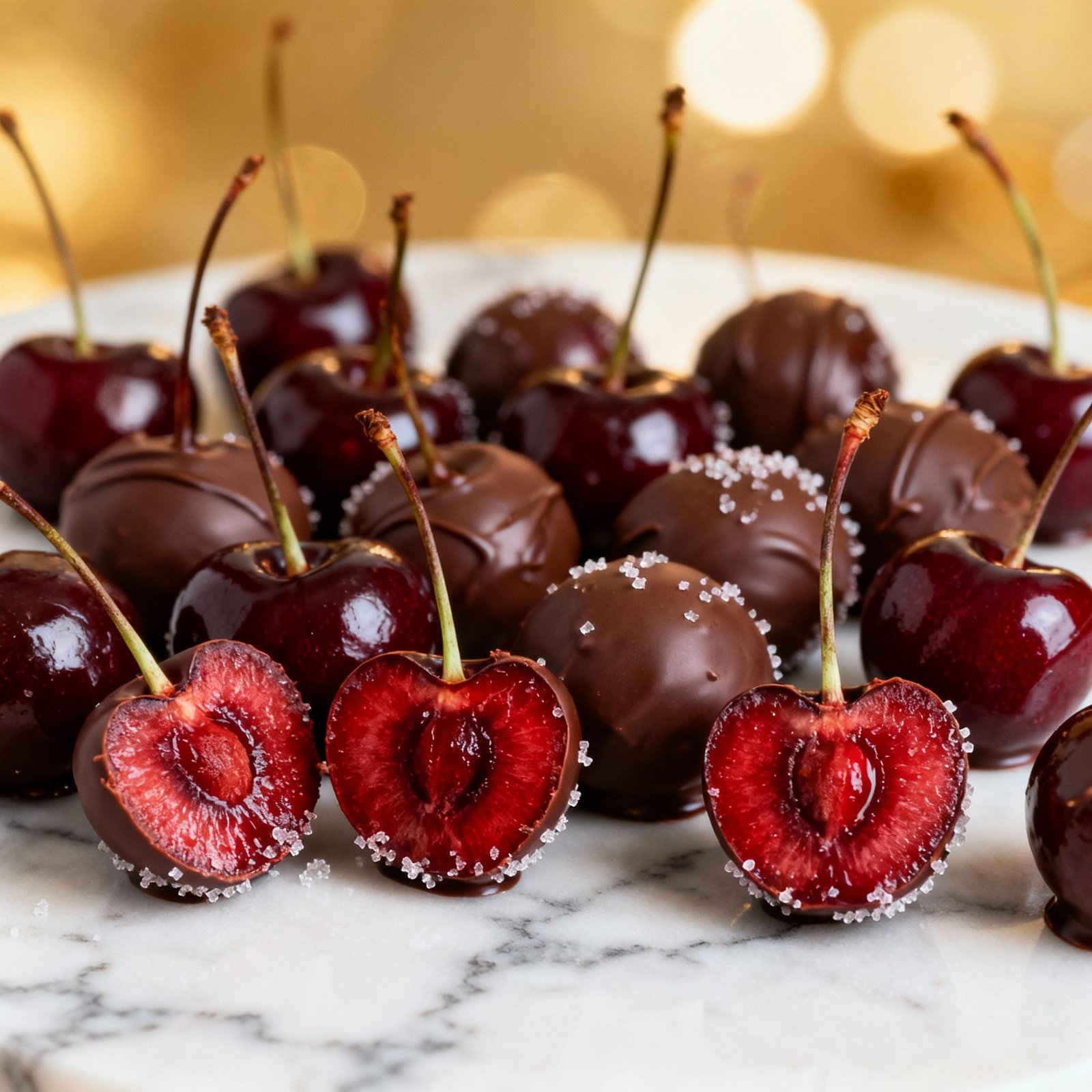 10. Garnish (Optional): While the chocolate is still wet, you can sprinkle the cherries with chopped nuts, sprinkles, sea salt, or other desired toppings.