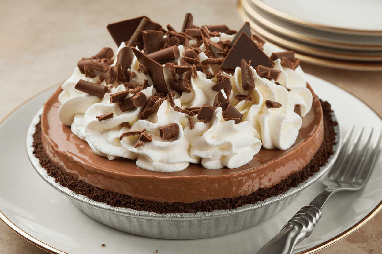 You want a dessert that shuts down conversation? This is it. Silky chocolate custard, buttery crust, and clouds of whipped cream—basically a mic drop in pie form.