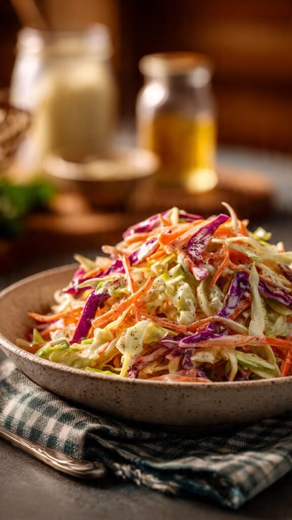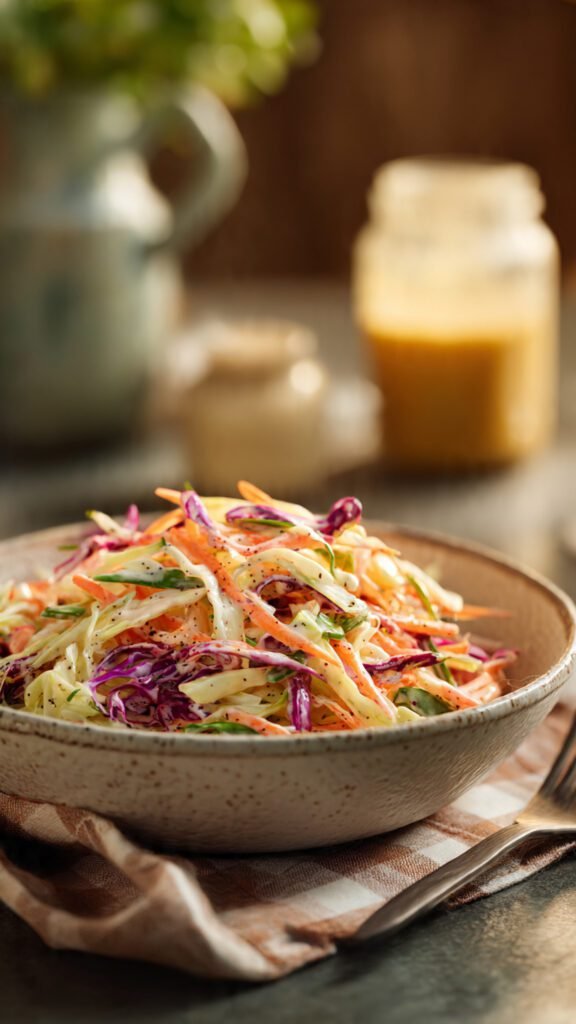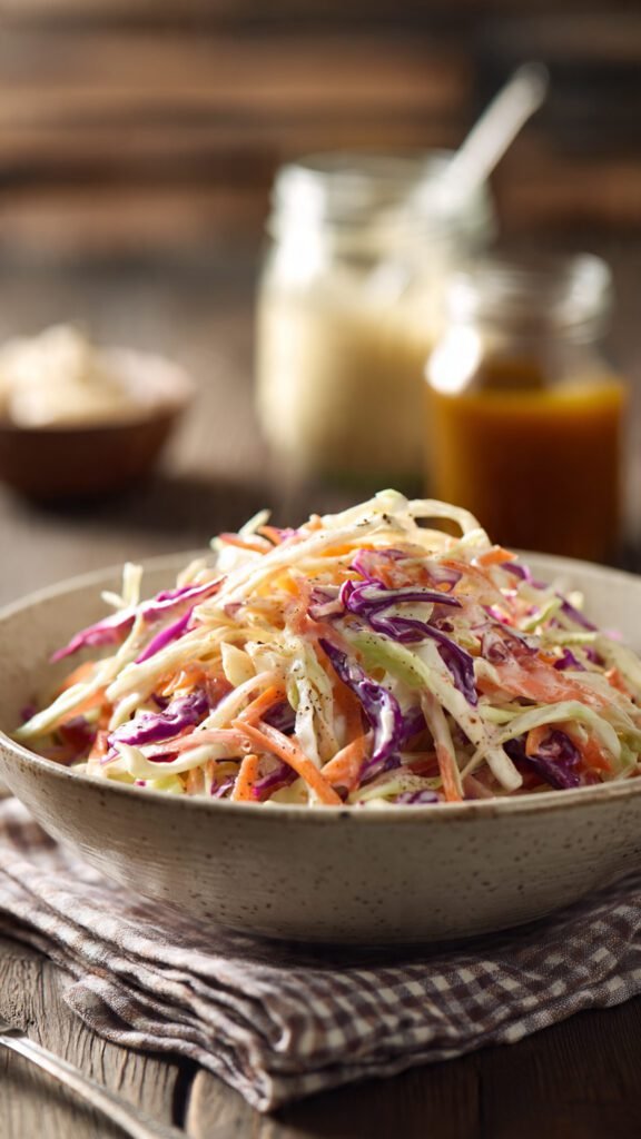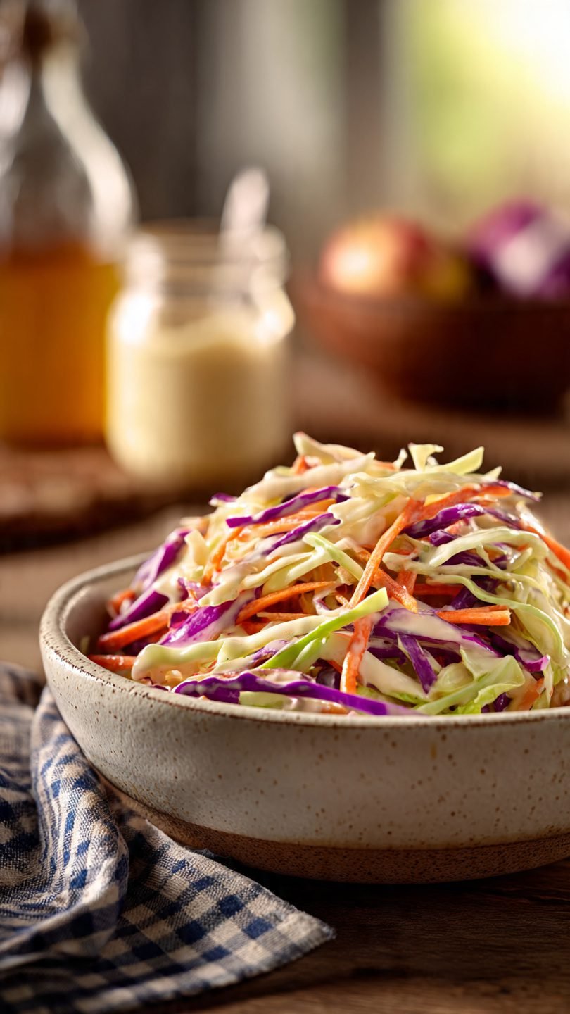 - The “Goldilocks” Ratio: We use enough high-quality mayonnaise to give it that luxurious mouthfeel, but we cut it with a significant hit of apple cider vinegar. This prevents the “heavy” feeling you get from standard creamy slaws. It cleans the palate, making it the perfect partner for fatty meats like brisket or fried chicken.