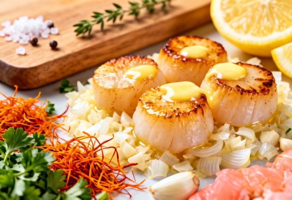 5. Poach the Scallops: Gently add the scallops to the sauce in a single layer. Cook for 2-3 minutes per side, or until the scallops are just cooked through and opaque. Be careful not to overcook them, as they will become rubbery.