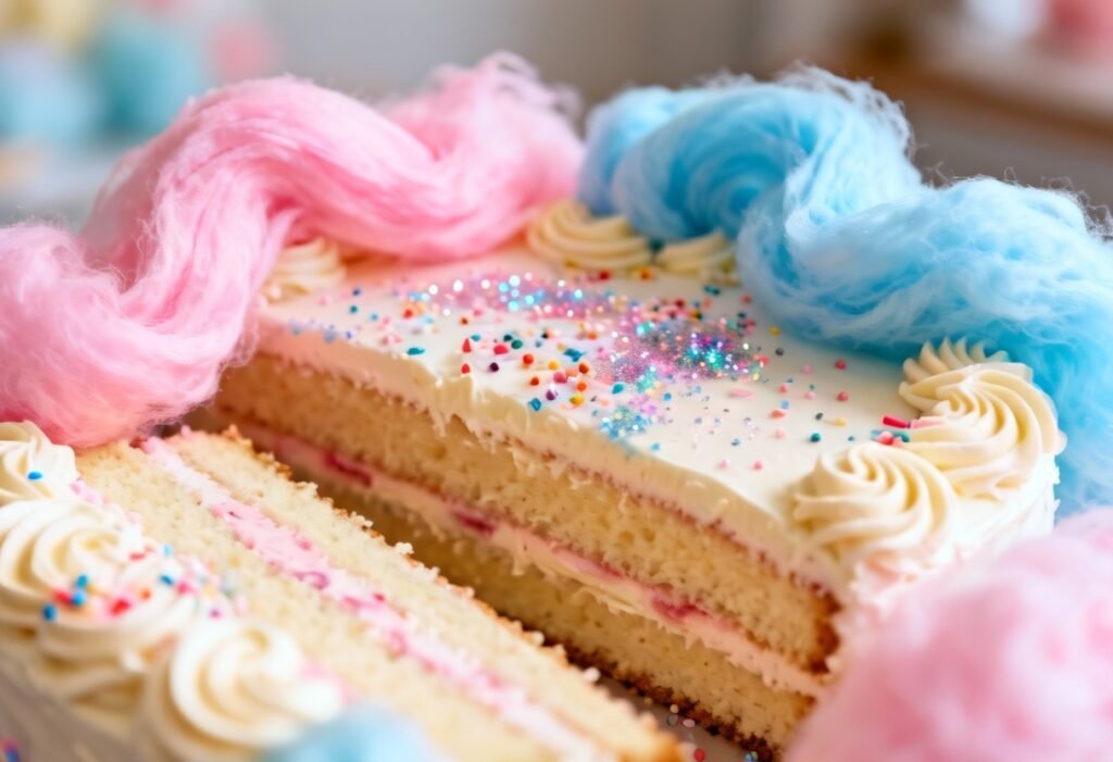 - Garnish (Optional): Decorate the cake with cotton candy, sprinkles, or any other desired toppings.