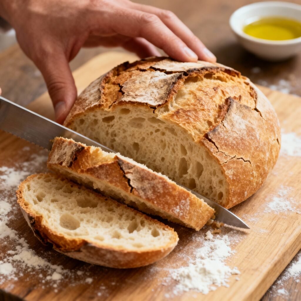 • Minimal Kneading: Over-kneading can lead to a tough bread. This recipe focuses on gentle handling and time to develop gluten. The “stretch and fold” technique strengthens the dough without overworking it.