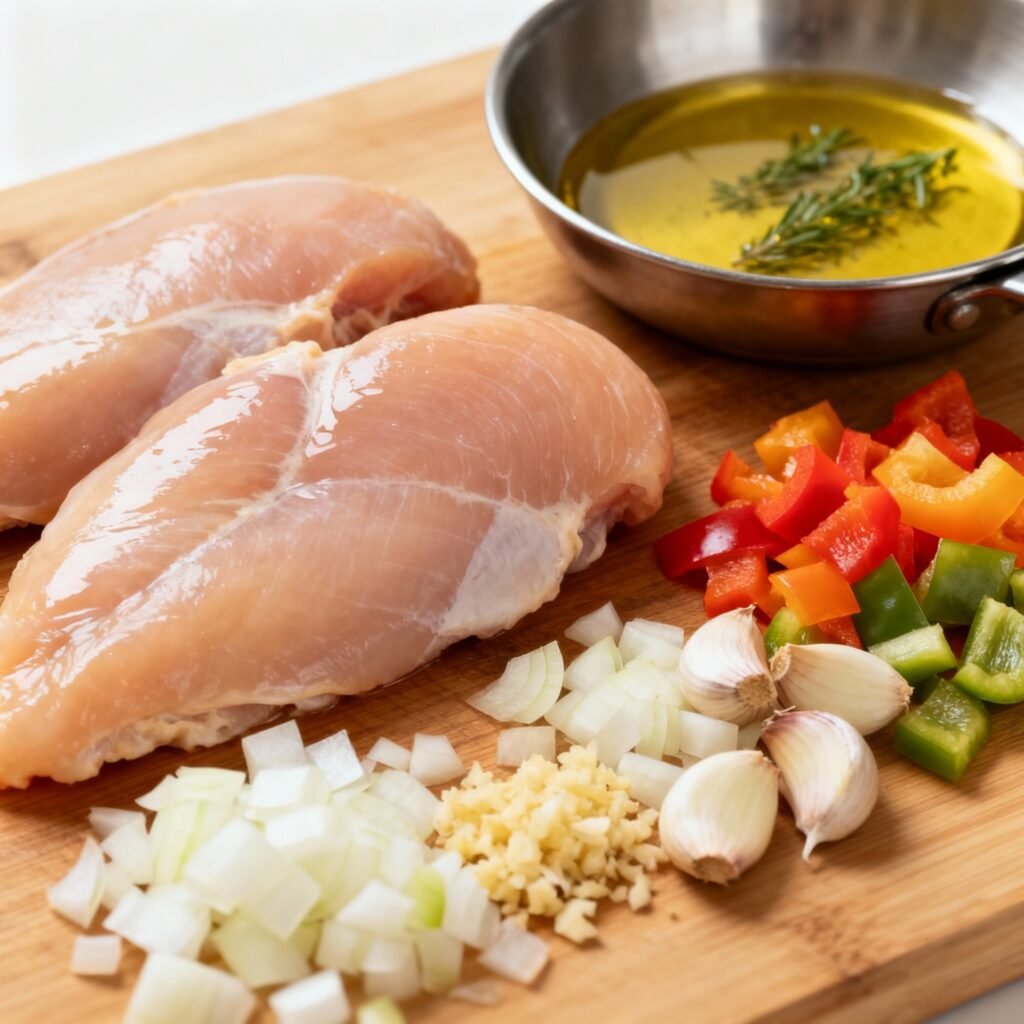 - Prepare the Chicken: Pat the chicken breasts dry with paper towels. This helps them brown better. Trim off any excess fat or tendons.