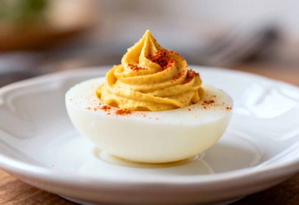 - Fill the Eggs: You can use a spoon to fill the egg whites, or for a more polished look, transfer the filling to a piping bag fitted with a large star tip. Pipe the filling into each egg white half.