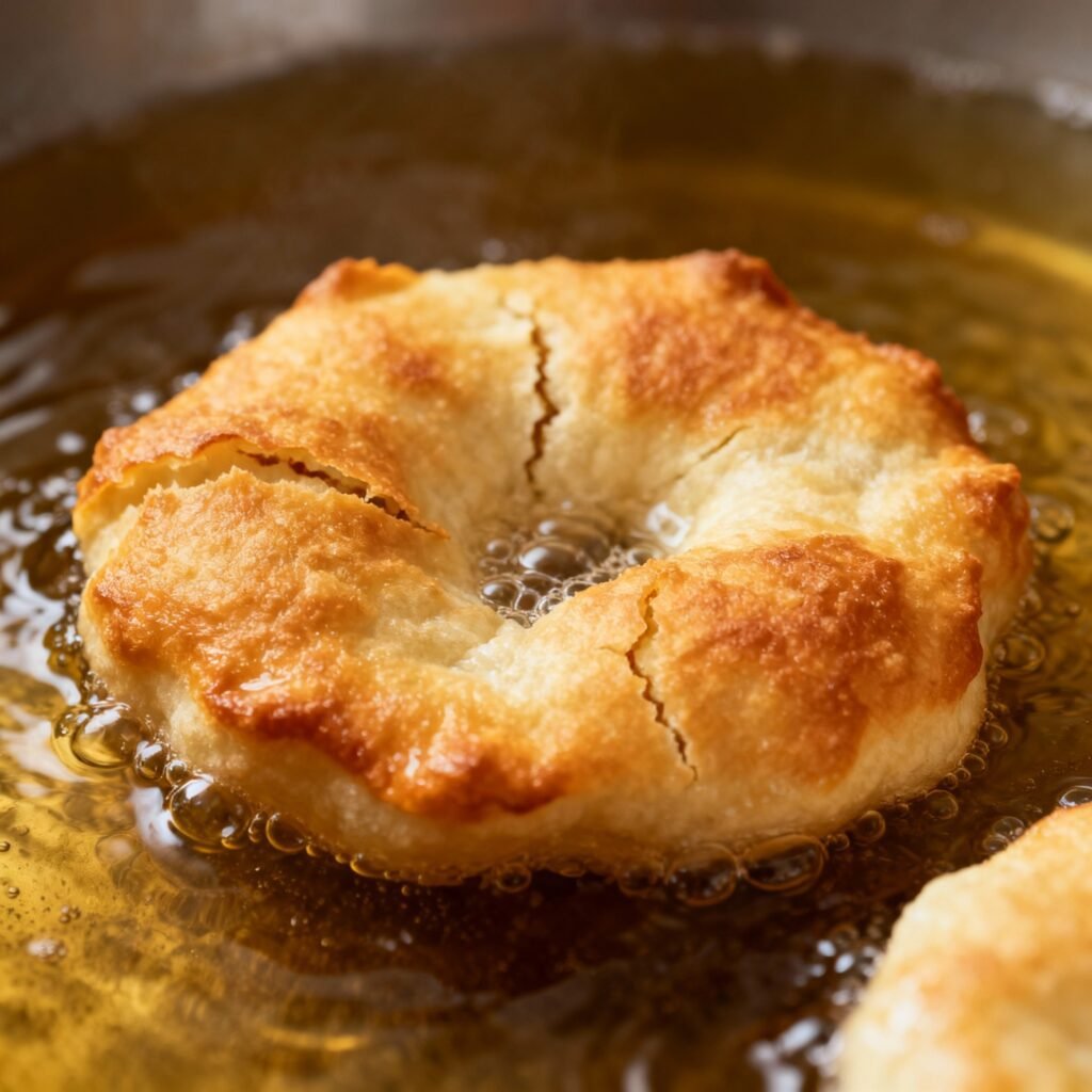 - Poke Holes: Some people like to poke a few holes in the center of the dough before frying to prevent it from puffing up too much. This is a matter of personal preference.