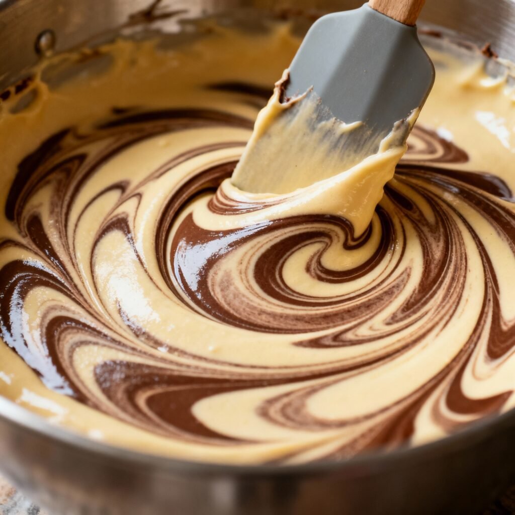 - Create Swirls: Use a knife or skewer to gently swirl the batters together, creating a marble effect. Be careful not to overmix, as this can result in a muddy appearance.