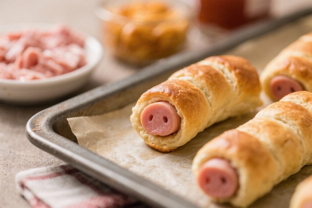 - Arrange on Baking Sheet: Place the wrapped sausages, seam-side down, on the prepared baking sheet.