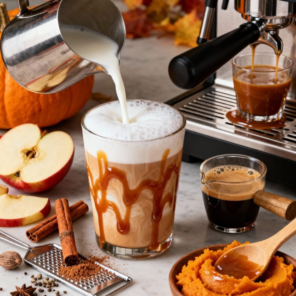 - Layer the Drink: Pour the steamed milk into a mug. Slowly drizzle the apple brown sugar syrup over the milk. Top with 2 shots of espresso (or 1/2 cup of strong brewed coffee). Drizzle with caramel sauce, if desired.