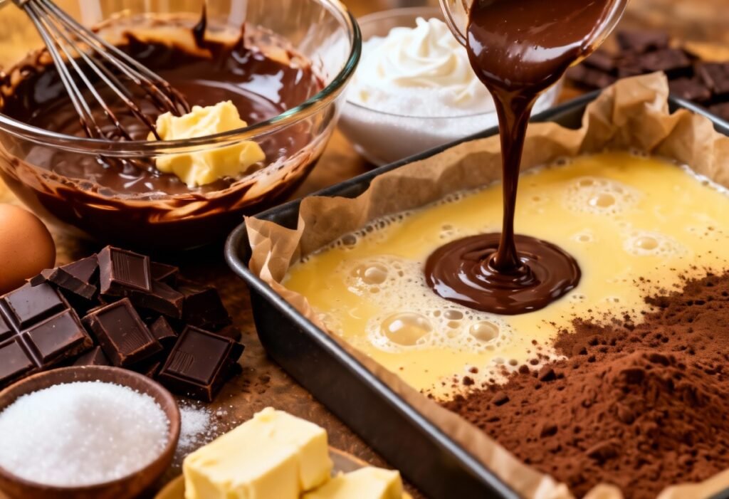 - Melt the Chocolate and Butter: In a heatproof bowl set over a simmering pot of water (double boiler), melt the chocolate and butter together, stirring occasionally until smooth. Be careful not to let the bottom of the bowl touch the water. Remove from heat and let cool slightly.