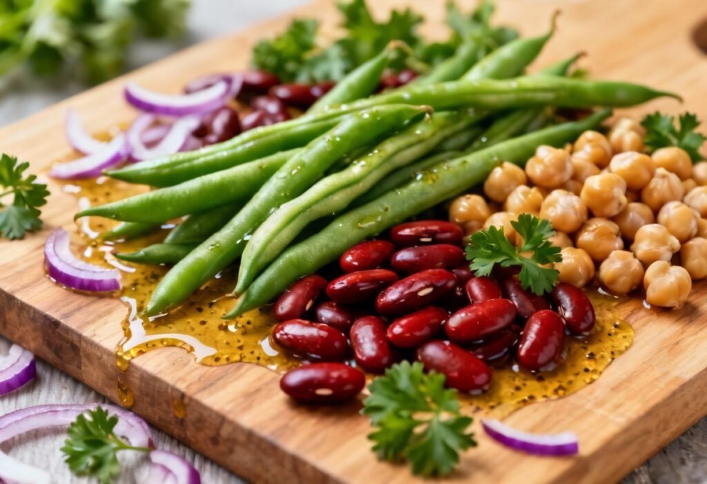 1. Prepare the Beans: In a large bowl, combine the drained and rinsed kidney beans, cannellini beans, green beans, and chickpeas.