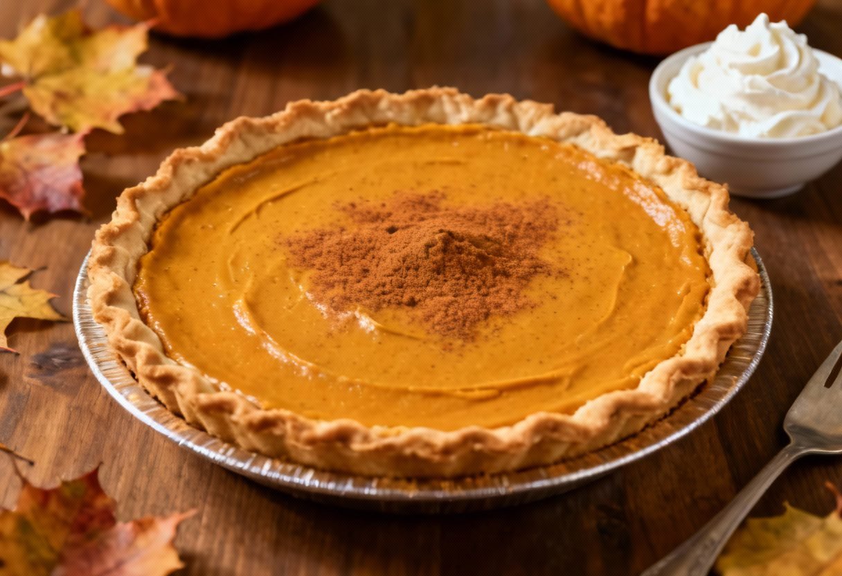 - Pour Filling into Crust: Pour the pumpkin pie filling into the pre-baked pie crust.