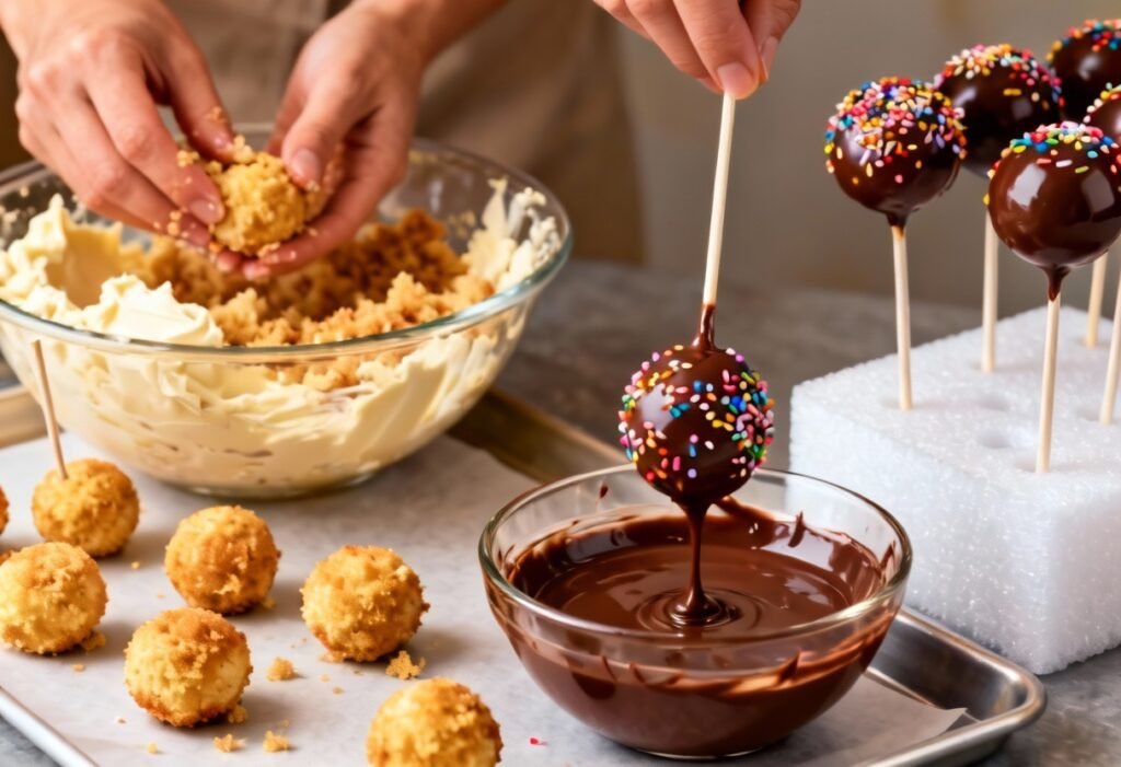 - Shape the Cake Pops: