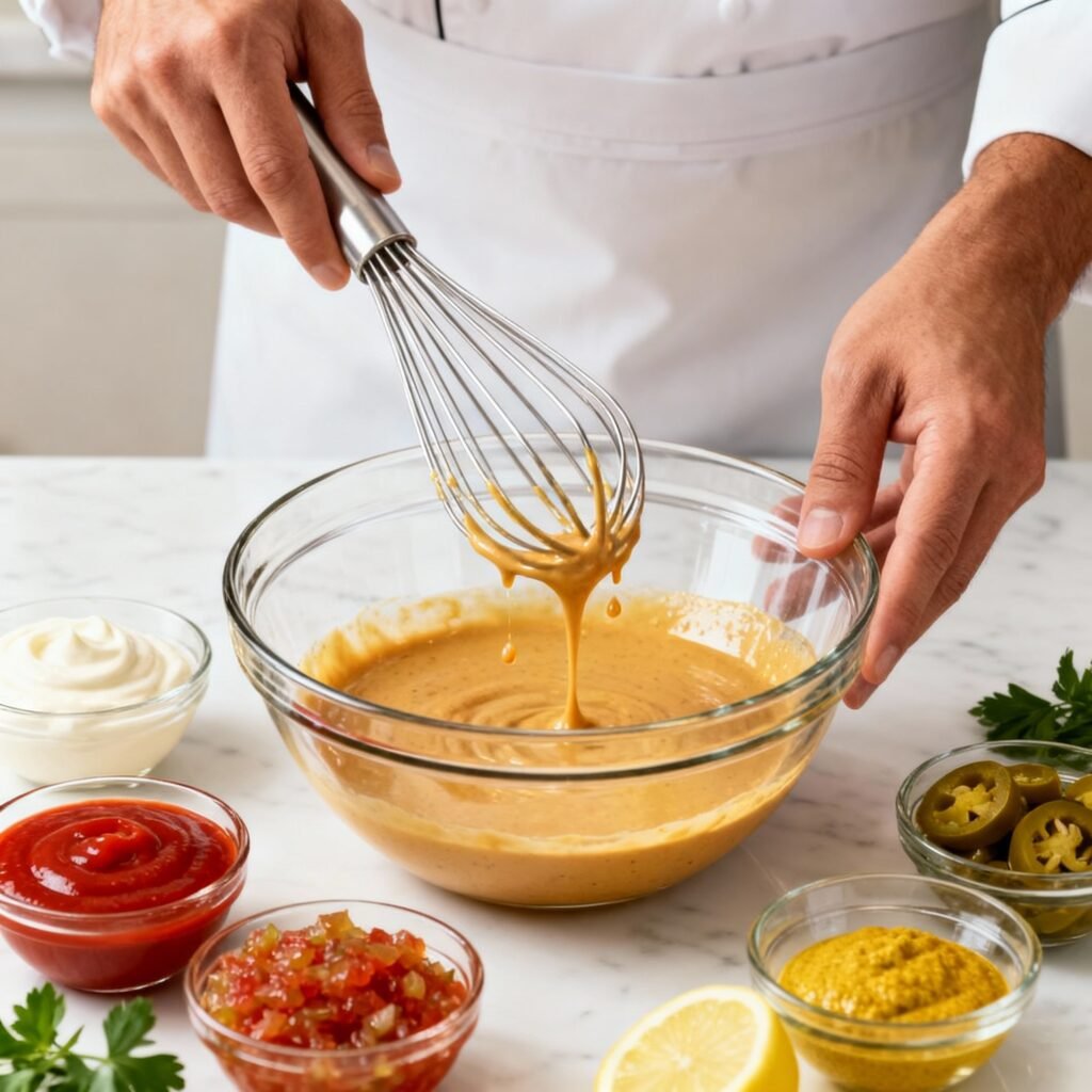 - Mix Well: Use a whisk or spoon to thoroughly mix all the ingredients until they are well combined and the sauce is smooth and uniform in color.