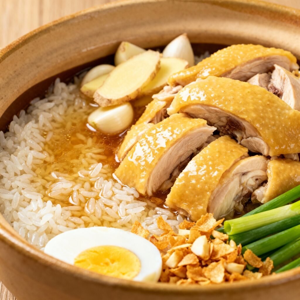 - Add Rice and Broth: Add the glutinous rice to the pot and stir to coat it with the oil and aromatics. Pour in the chicken broth.