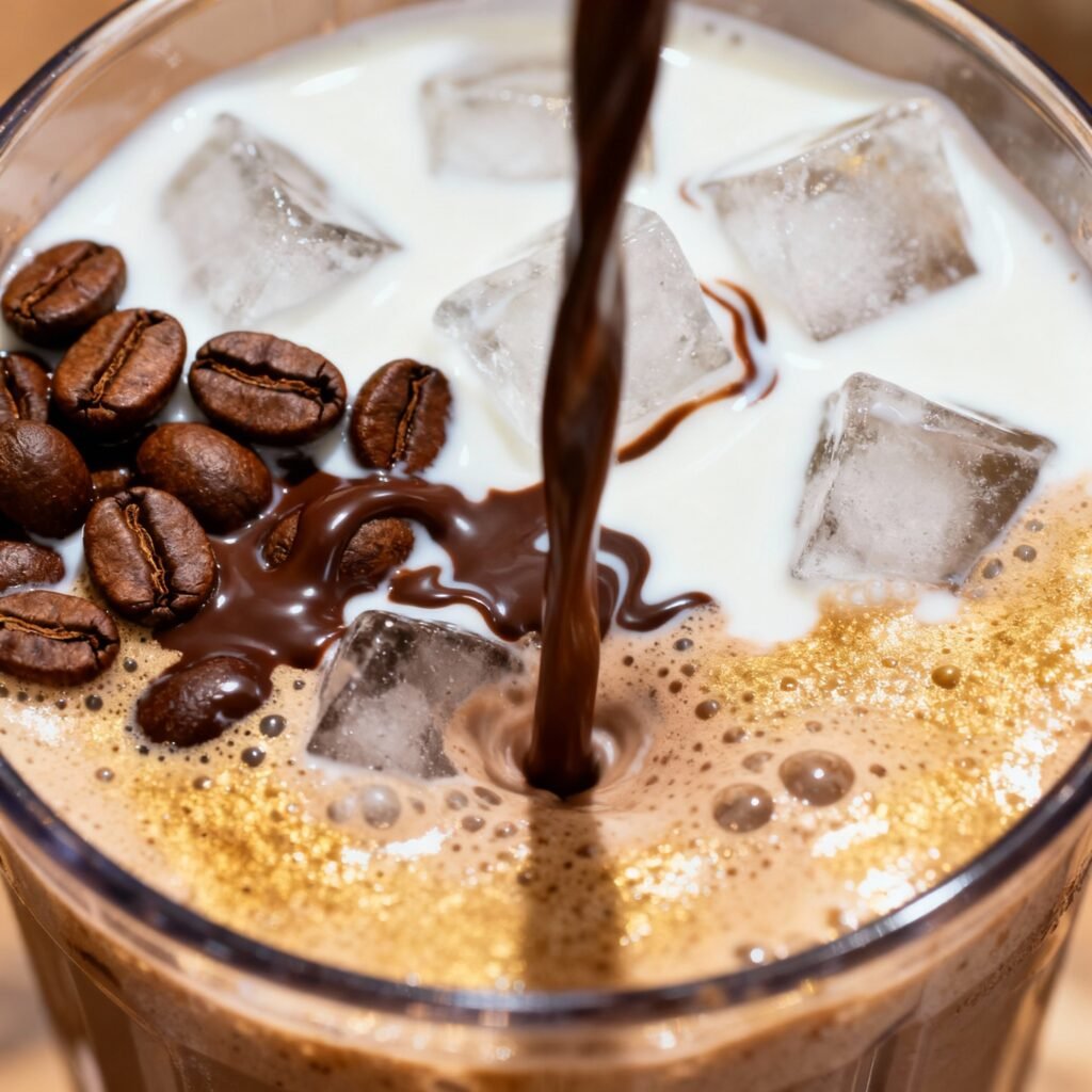 - Combine Ingredients: In a blender, combine the cooled coffee, milk, chocolate syrup, cocoa powder, and heavy cream (if using).