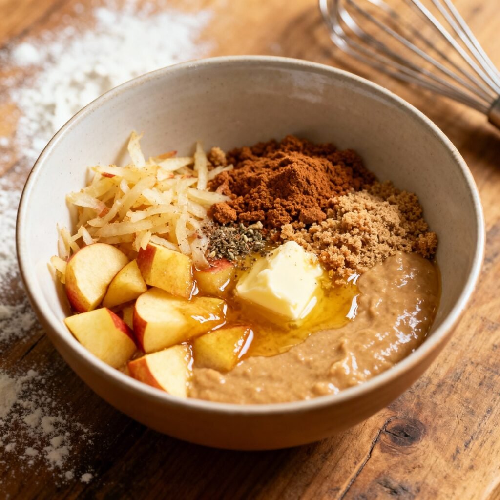 - Fold in Apples: Gently fold in the chopped apples (and nuts, if using) until they are evenly distributed throughout the batter.