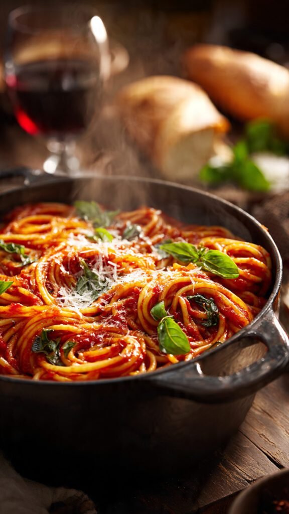 1. Can I use other pasta shapes? Absolutely. Penne, fusilli, and rigatoni work great (and are actually easier to stir than spaghetti). Just keep an eye on the liquid levels; tube shapes drink up sauce like crazy.