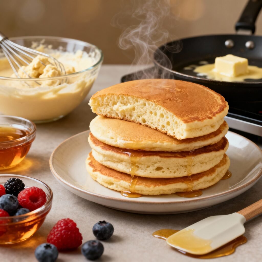 Is there anything more comforting than a stack of warm, fluffy pancakes on a weekend morning? The aroma of vanilla and butter filling the kitchen, the satisfying sizzle as they cook on the griddle… it’s a simple pleasure that brings joy to kids and adults alike. And the best part? Making delicious, homemade pancakes from scratch is surprisingly easy! This recipe is your go-to guide for creating light, airy, and utterly irresistible pancakes that will become a family favorite.