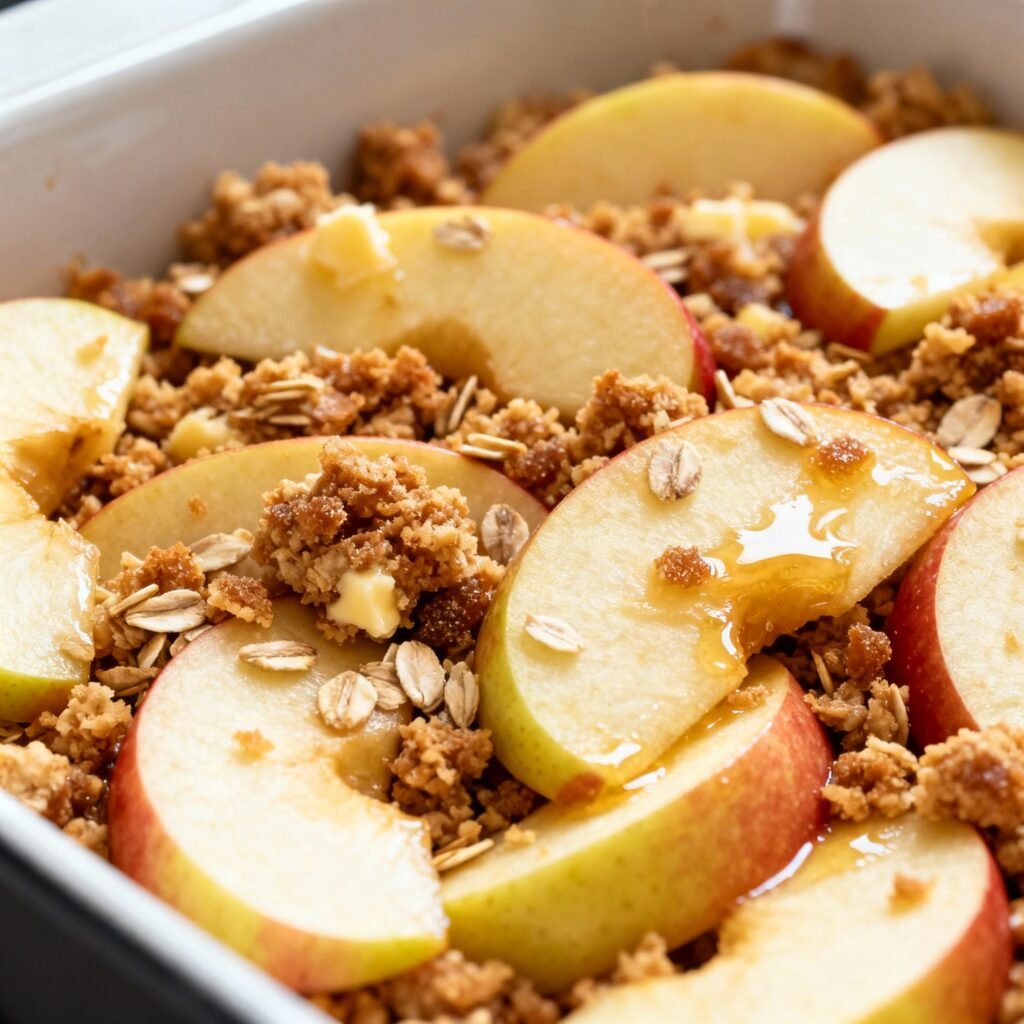 - Add the Topping: Sprinkle the crisp topping evenly over the apple filling.