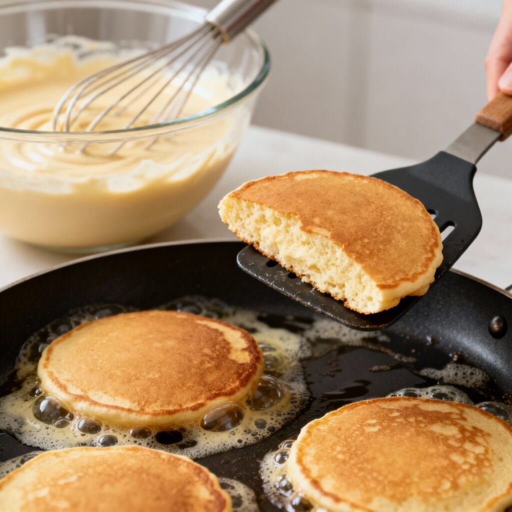 - Cook the Pancakes: Cook for 2-3 minutes per side, or until golden brown and bubbles start to form on the surface. Flip the pancakes carefully with a spatula.