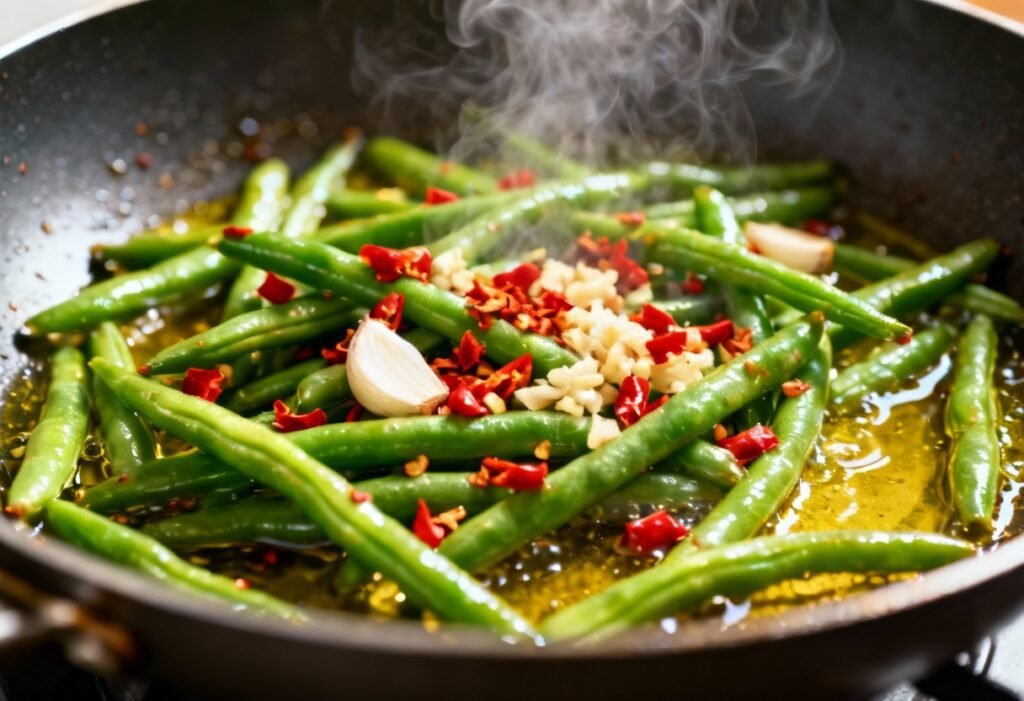 4. Add the Green Beans: Add the green beans to the wok or skillet and stir-fry for 5-7 minutes, or until they are bright green and crisp-tender. Stir frequently to ensure even cooking.