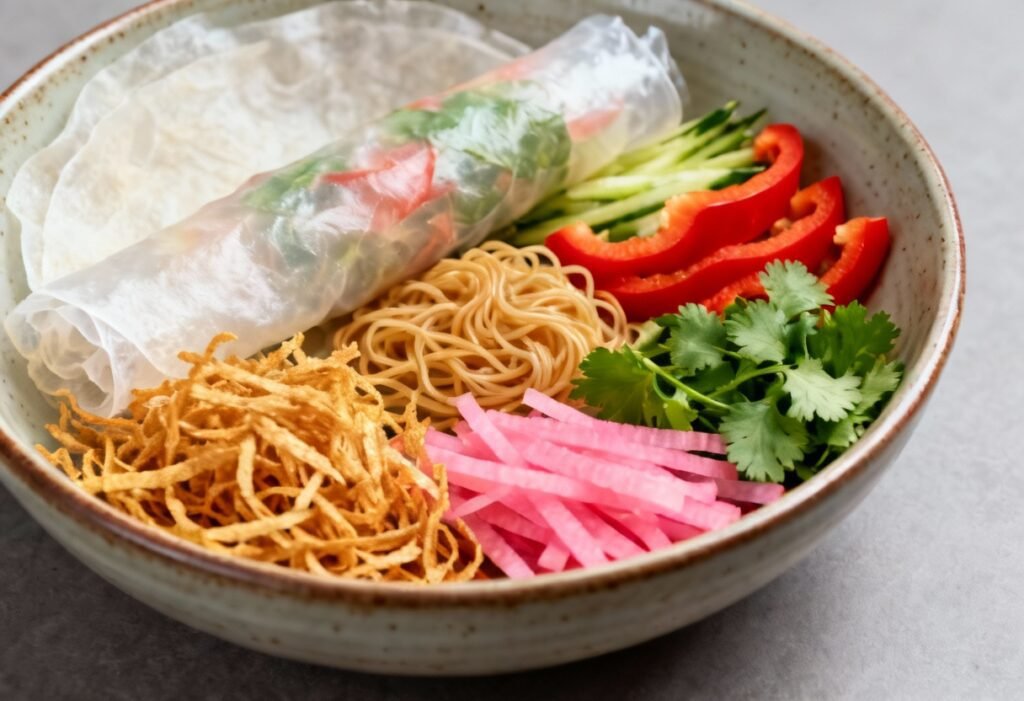 - Prepare the Noodles: Cook the rice vermicelli noodles according to package directions. Usually, this involves soaking them in hot water for a few minutes until softened. Drain well and set aside. You can lightly toss them with a little sesame oil to prevent sticking.