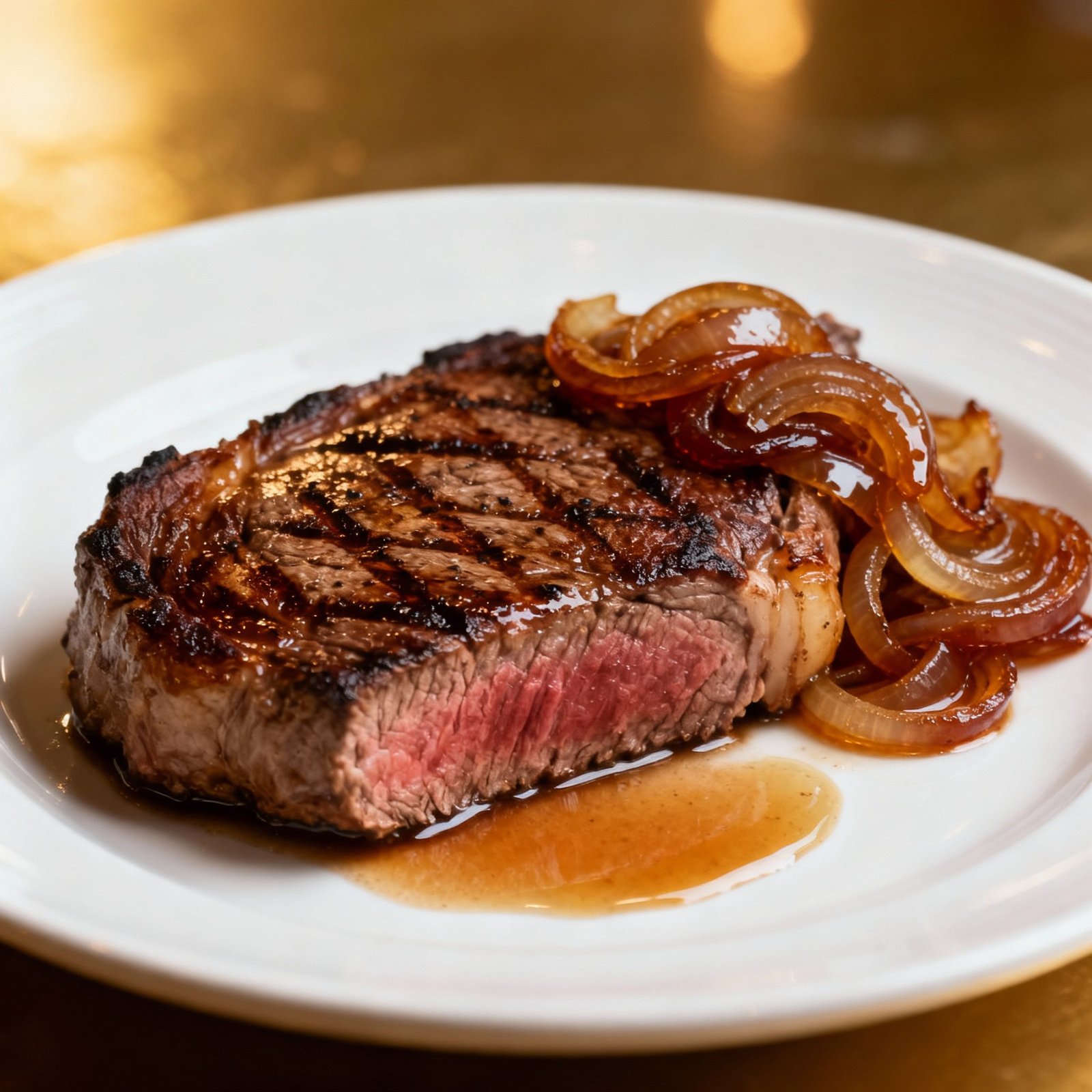 A: While the steak is best served immediately, the caramelized onions can be made ahead of time and stored in the refrigerator for up to 3 days. Simply reheat them before serving with the steak.