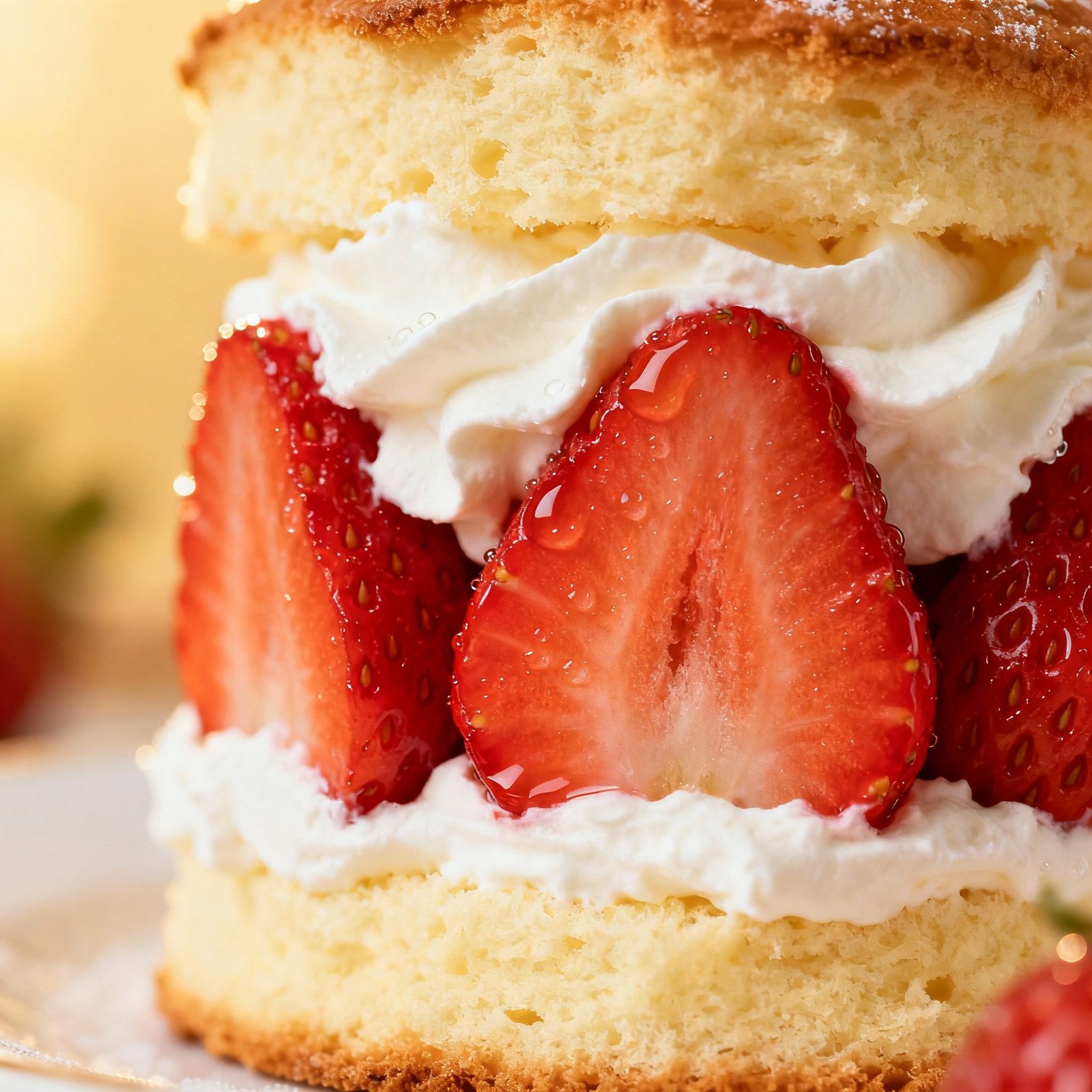 - Assemble the Shortcakes: Let the shortcakes cool slightly before assembling. Split each shortcake in half. Spoon a generous amount of macerated strawberries and their juices over the bottom half of each shortcake. Top with a dollop of whipped cream and the top half of the shortcake.