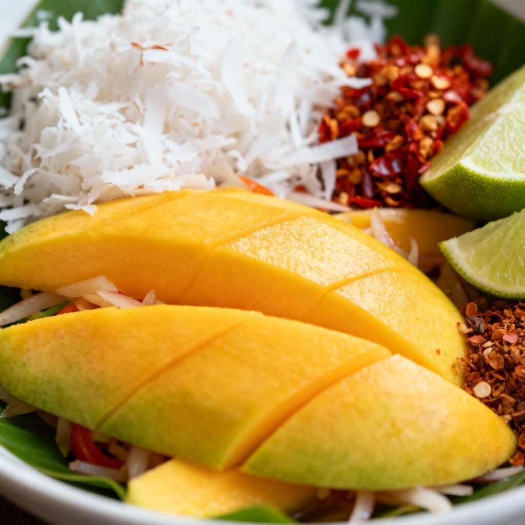• The Texture: From the crunchy peanuts and toasted coconut (optional) to the crisp mangoes and fresh herbs, every ingredient contributes to a delightful textural experience.