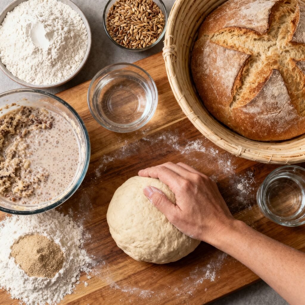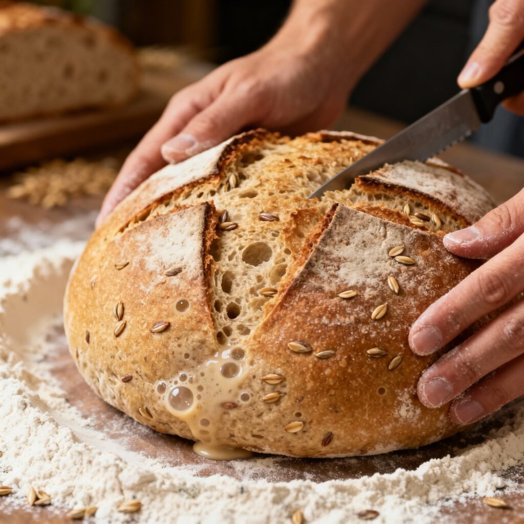 • Balanced Hydration: The hydration level (the ratio of water to flour) is carefully calibrated to accommodate the absorbency of whole grains. This ensures a dough that’s manageable yet still yields a moist and open crumb.