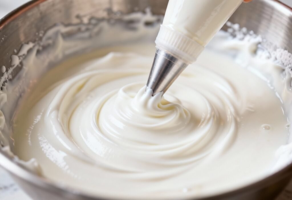 - Add Flavoring (Optional): If using, add the clear vanilla extract and mix on low speed until just combined. Clear vanilla extract is recommended to avoid tinting the icing.