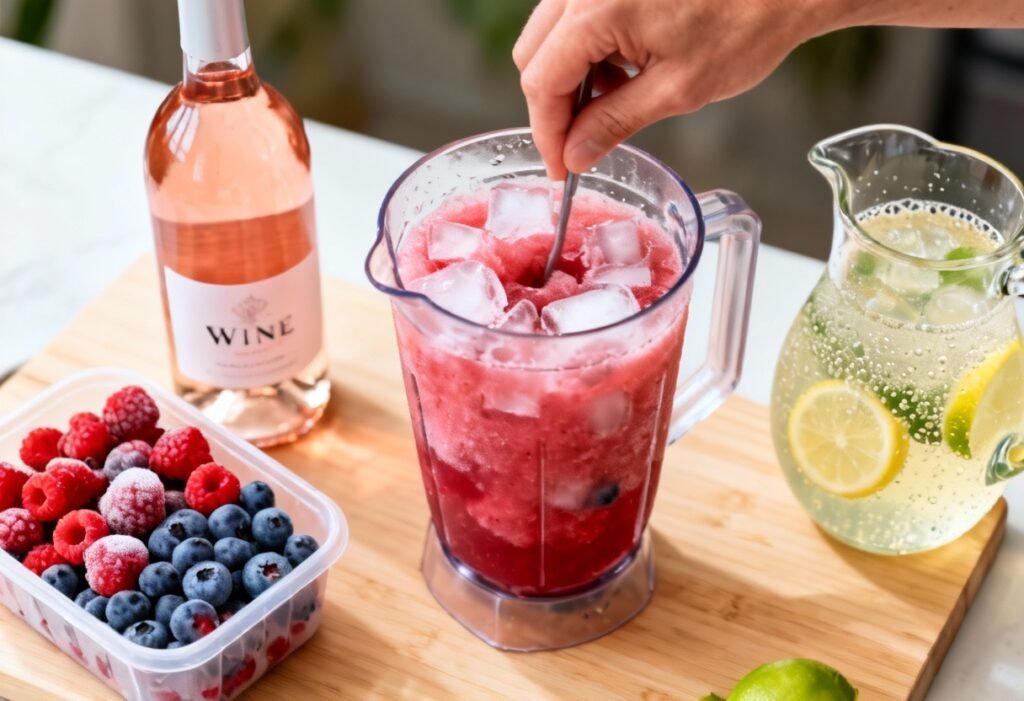 - Combine Ingredients: Pour the chilled (or room temperature) wine into your blender. Add the frozen fruit.