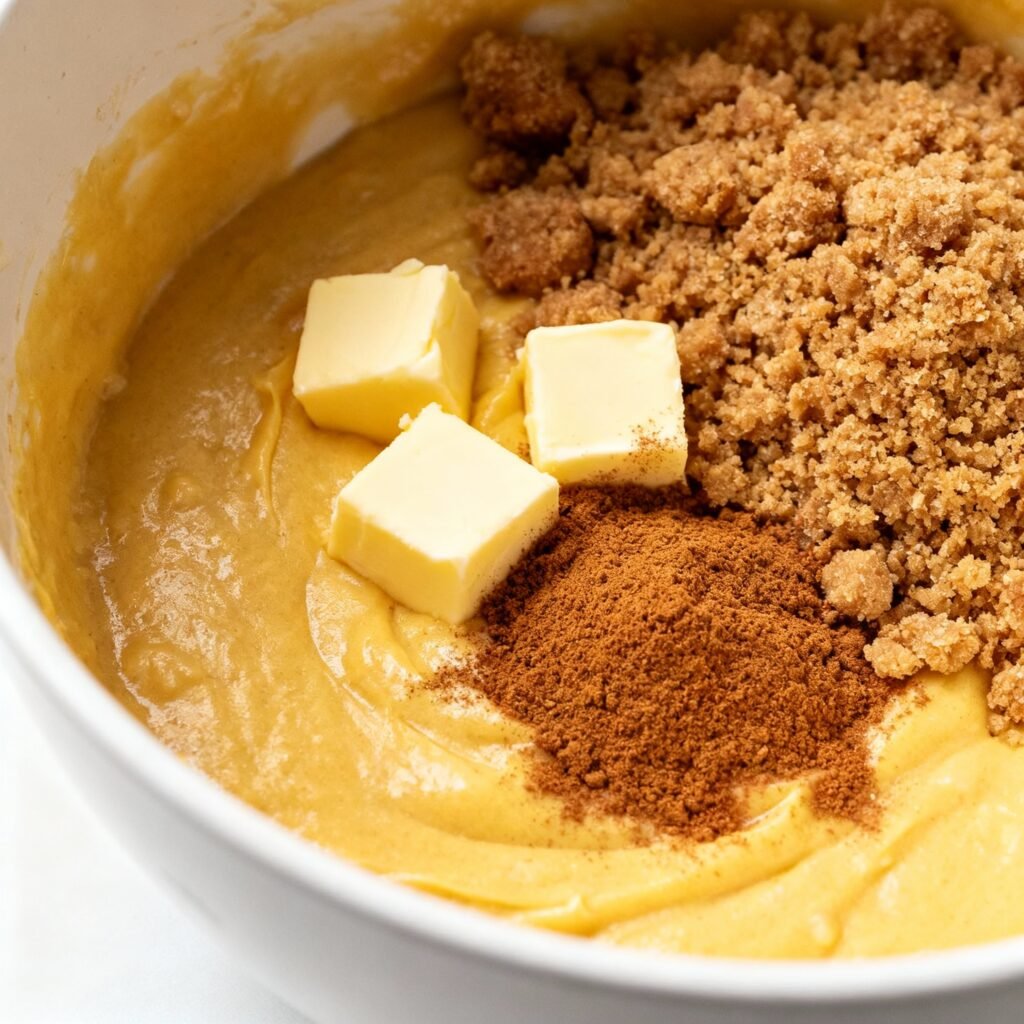 7. Add the Streusel: Sprinkle the streusel topping evenly over the cake batter.
